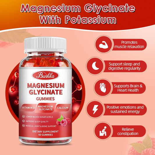 Bunkka Magnesium Glyciniate Gummies with Calcium Pottasium Vitamin Coq10 Bone Joint Brain Health Muscle Cramp Sleep Quality