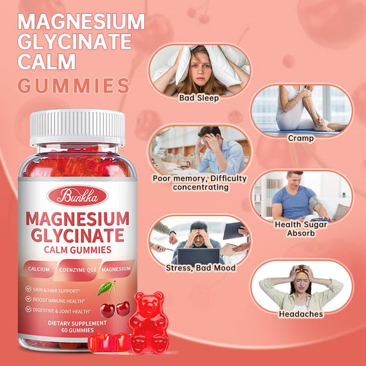 Bunkka Magnesium Glycinate Gummies Magnesium Nutrition Diet Supplement Memory Weak Bone Joint Health Sleep Quality Muscle Cramps