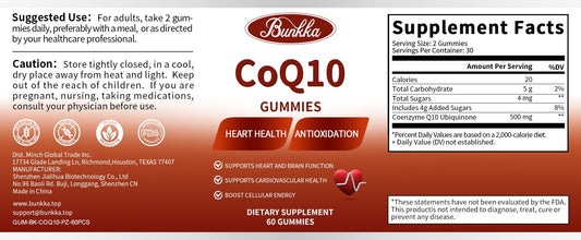 BUNKKA CoQ10 Gummies 500mg For Joint Health Support Cardiovascular and Heart Health Energy Production Antioxidant Coenzyme Q10