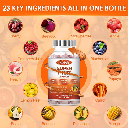 Organic Fruits Supplement with 23 Fruits Rich in Antioxidants Potent Fruits Capsules for Energy Boost