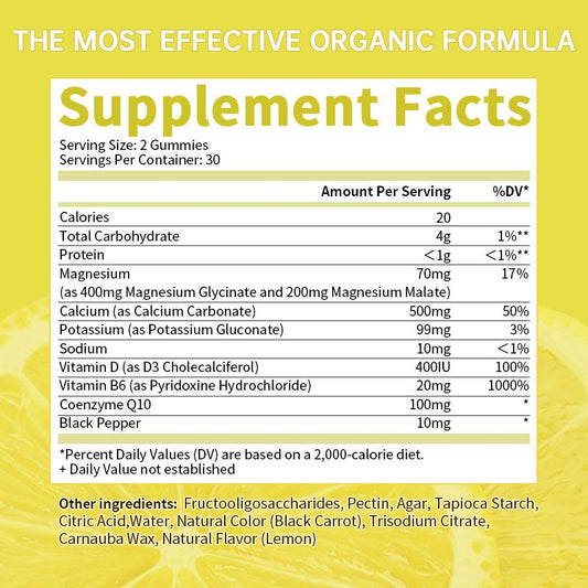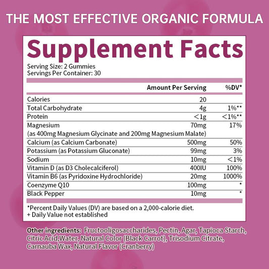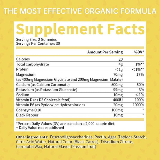 Bunkka Magnesium Glyciniate Gummies with Calcium Pottasium Vitamin Coq10 Bone Joint Brain Health Muscle Cramp Sleep Quality
